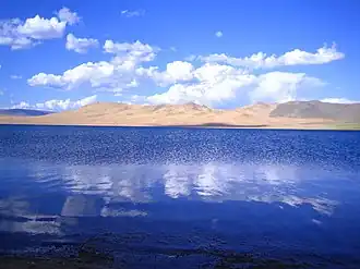 2594 | 2010 | The park encompasses two large freshwater lakes, Bayan Lake to the west, and Ulaagchin Khar Lake 50 km to the east. This is the 'Khar Lake' in Zavkhan Province located in a depression below the Tarvagatai Mountains. Ulaagchin Khar is surrounded by sand dunes and mountains.[43][44] |