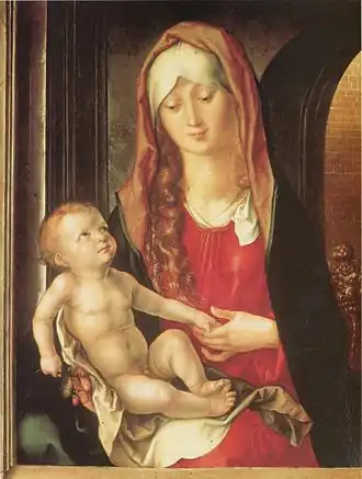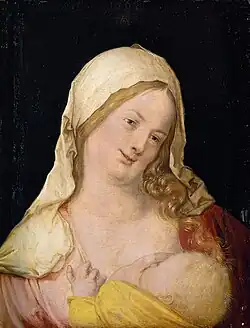 - ^ It was not unusual at the time to use parchment mounted on the panel instead of a primer as a simpler way to prepare the surface of the panel. It also allowed to copy the preparatory drawing before being mounted. Daniel Hess; Oliver Mack (2012). "Tradition und Vielfalt: Dürers Bildträger". In Daniel Hess; Thomas Eser (eds.). Der frühe Dürer (exhibition catalogue) (in German). Nürnberg: Germanisches Nationalmuseum. pp. 172ff. ISBN 978-3-936688-59-7.
