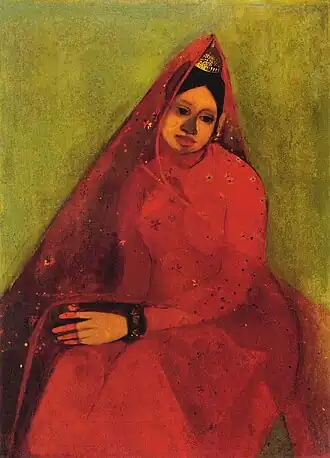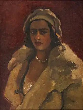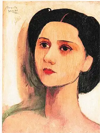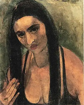 This is a list of paintings by Hungarian-born Indian artist Amrita Sher-Gil (1913–1941).[1] Over 60 of her paintings, of which most were portraits and self-portraits, were created between 1930 and 1932 in Hungary and France.[2] 19 were self-portraits painted in Europe between 1930 and 1934, and two, including one in a blue sari, were later completed in India.[3] Several of her paintings were of nudes; some of herself and others based on models of which most were female.[4]