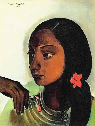 Sher-Gil later wrote that "towards the end of 1933 I began to be haunted by an intense longing to return to India, feeling in some strange inexplicable way that there lay my destiny as a painter".[6] She subsequently painted Self-Portrait as a Tahitian in early 1934, while still in Paris.[8][a]
