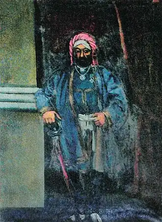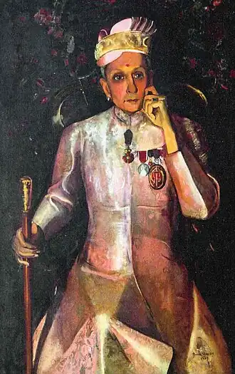 At the encouragement of her mother, Sher-Gil was briefly engaged to aristocrat Yusuf Ali Khan, and painted his portrait in Paris.[36] |
