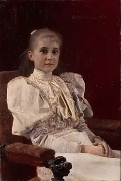 Portrait of Helene Klimt[34] | 1898 | Oil on carboard, 60 cm × 40 cm | Privately owned[35][34] | Depicting Klimt's six-year-old niece, whom Klimt helped look after following the death of his brother Ernst in 1892. Klimt became her legal guardian.[20][34] |