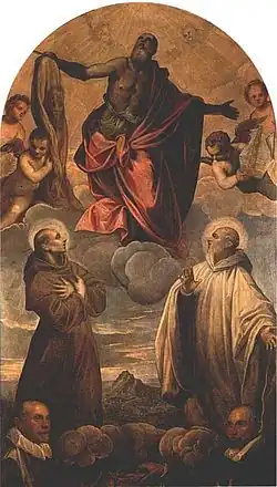 - Saint Bartholomew, Saint Benedict and Blessed Bernardo Tolomei with the Commissioners Bartolomeo and Battista Malmignati, circa 1580, Sanctuary of the Madonna del Pilastrello, Lendinara