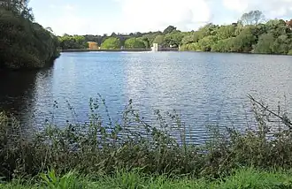 The middle reservoir in the Waterworks Valley (the upper reservoir being Handois, and the lower one Millbrook). The term waterworks relates to when the stream through the valley powered several watermills before the age of steam. | [7][8][9] |