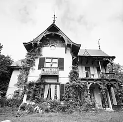 Villa, transitional architectural style popular between 1880-1900, very early and rare example of a flat roof Huis House 1902 Rijperweg 14 52°24′06″N 4°36′42″E / 52.40163°N 4.61161°E / 52.40163; 4.61161 (RM511142 - Rijperweg 14) 511142