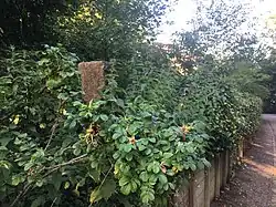 Iron fence consisting of bended bars, with an entrance to the site through a simple double gate Boundary Boundary 1885 Parkweg bij 18A 52°24′00″N 4°36′46″E / 52.40012°N 4.61276°E / 52.40012; 4.61276 (RM511117 - Parkweg bij 18A) 511117