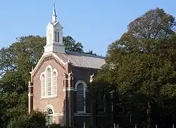 Kerkje Provinciaal Ziekenhuis, portierswoning, ingangshek en torenuurwerk Building Church or part 19th century Brederodelaan 52 52°25′08″N 4°37′17″E / 52.41887°N 4.62152°E / 52.41887; 4.62152 (RM9672 - Brederodelaan 52) 9672