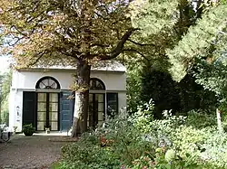 Fraai tuinpaviljoen. Louis XVI Building Castle parts 18th century Kennemerweg bij 32 52°24′25″N 4°37′26″E / 52.40686°N 4.62402°E / 52.40686; 4.62402 (RM9699 - Kennemerweg bij 32) 9699