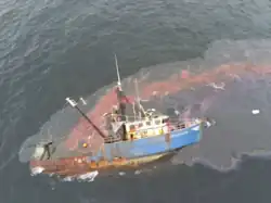 The 86-foot (26 m) scallop fishing vessel ran aground and sank near Green Island, Boston Harbor, Massachusetts, with the vessel reporting a maximum potential discharge of 4,000 US gallons (15,000 L; 3,300 imp gal) of diesel fuel and 50 US gallons (190 L; 42 imp gal) of lube oil. The three crew were rescued by the United States Coast Guard Northeast Sector without injury.[97]