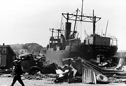 | Richard With | World War II: The cargo liner was attacked and damaged off Sørreisa by Luftwaffe aircraft and was beached. She was later refloated, repaired and returned to service.[35] | |