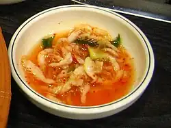 A popular dish in parts of China, based on fresh-water shrimp that are placed in a strong liquor, baijiu, and then eaten, often while they are alive. Modified recipes are used in different parts of China. For example, the drunken shrimp can be cooked in boiling water instead of serving them while they are still live. In other recipes, the shrimp are boiled first and then marinated in alcohol.[7][8] | ||||