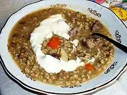 Iran, Azerbaijan, Turkey | Potage | A yogurt soup that consists of yogurt and leafy vegetables. Served hot. |