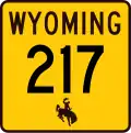 ![]() ![]() Signage used for Wyoming State Highways, which includes the Bucking Horse and Rider. | |