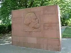 A 1973 relief depicting Marx originally installed on a building of the University of Leipzig but relocated in 2008.[5] |