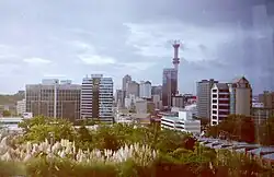 Auckland's skyline in 1995, with the Sky Tower seen under construction