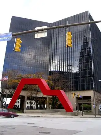 The 19th-tallest building in Ohio. Built as the Bank One Center,[21][22] the building sits directly across the street from Federal Reserve Bank of Cleveland. |