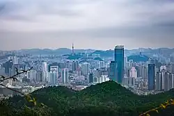 This list of tallest buildings in Guiyang ranks skyscrapers in the Chinese city of Guiyang by height. Guiyang is the capital and largest city of the Chinese province of Guizhou, with a population of over 5.9 million and an urban area population of 4.5 million. It is a major industrial and research centre in southwestern China. Guiyang is a hilly city and its forested peaks can be seen among the high-rises in the cityscape.[3]