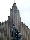 Following much discussion, a 40-metre (130 ft) height limit was introduced to Melbourne in 1916, along with regulations concerning fire-proof construction. This height is often said to have been the limit of fire ladders at the time, but this was an idea that the then fire chief allowed to be widely circulated even though the tallest ladder rose to only 25 metres (82 ft), in order to ensure that fire safety was paramount.[7] The main reasons for the limit, as well as fire proofing, were the preservation of light and air to the streets, avoiding congestion, and the influence of the City Beautiful movement, preferring evenly scaled streetscapes over those with buildings of varying heights.[8] The height limit remained in force for nearly 40 years, allowing only uninhabited 'architectural features' to project beyond the 40 metre limit. The Manchester Unity Building (1932), for instance, achieved a total height of 64 metres (210 ft) to the top of its corner tower.