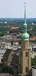 | 112.0 m (390 ft) | H>100 | Reinoldikirche | Lutheran | 51°30′53″N 7°28′02″E / 51.514745°N 7.467157°E | 1520 | Dortmund | Built in 1454 with 112 metres (367 ft), collapsed in earthquake 1661, now 104 metres (341 ft) | ||