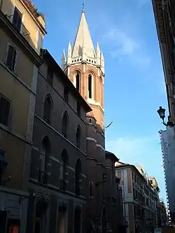 One of the city's top attractions, the flight of 138 stairs is the biggest in Europe.[11] They are topped by the Trinita dei Monti church, and below there is the large Piazza di Spagna. The Piazza di Spagna is also a major shopping destination in the city, and hosts several designer boutiques such as Missoni. |