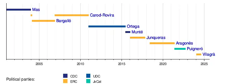 | During this interval, the office was suspended. | Direct rule over Catalonia | [6] | ||||||||