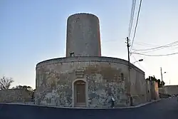 This is a list of windmills in Malta, that include those on Malta and Gozo. Most windmills (Maltese: imtieħen tar-riħ)[1][2] in Malta were built while the islands were under the rule of the Order of St. John,[1] by the Cottoner and the Manoel Foundations,[3] while other were built in the British Colonial period. There are 48 windmills (apart from those demolished that would add up to at least 69)[4] which were included on the antiques list of 1932[5] and scheduled as cultural buildings by the Malta Environment and Planning Authority (MEPA).[6] The windmills form an integral part of Maltese history.[7] Those in the countryside were used exclusively for food production, such as wheat, barley or vines, while some of those within the fortified walled cities in Valletta and the Three Cities had a military use, for the production of gunpowder.[8]