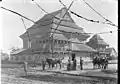1770[1]: 62 –1913[27] | The layered, pitched roof visible in surviving exterior photographs conceals a series of massive trusses from which the great dome was suspended.[28] The roof, which features three well-defined stages, was considered one of the most architecturally complex and interesting of wooden synagogue roofs.[29] The synagogue was enlarged in the nineteenth century by the addition of one story extensions on each side for the use of the women of the community.[28]: 231–2 |