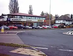 Continuing on from Walsall Road, Aldridge Road (also the A454) begins on the junction of Forge Lane and Roman Road. Aldridge Road becomes Little Aston Road at the point it crosses Footherley Brook approximately 100 yards before the junction with the A452 Chester Road. It is lined by around 170 houses both detached and semi detached. At the junction with the Chester Road is the former Evans Halshaw Porsche dealership, once a petroleum filling station which later became a Bentley dealership, then a Ferrari and Maserati dealership, and a classic car dealership. Currently the showroom is a Mercedes used car specialist.