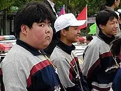 In 2003 an unknown individual took a photograph of Qian Zhijun, a student from Jinshan District, Shanghai,[2] while Qian attended a traffic safety event arranged by his school.[3][4] Qian had volunteered to be a part of the "traffic safety day" along with his classmates.[5] Qian weighed over 100 kilograms (220 lb),[6] Qian was described by various writers as being "fat with a pudgy face"[6] and having "an expression on his face like he'd been caught with his hand in the cookie jar."[7]