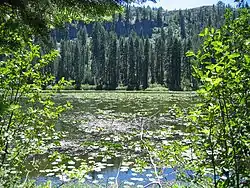 About 2.5 miles (4.0 km) north of Little Grass Valley Lake lies a small, natural lily pond called Fowler Lake. Its coordinates are 39°46′27″N 121°00′19″W / 39.77417°N 121.00528°W, and its altitude is 5,446 feet (1,660 m).