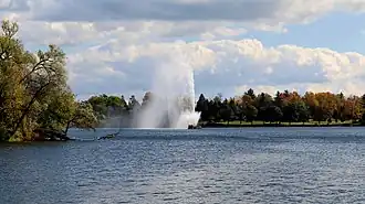 Centennial Fountain was built to celebrate the 100th anniversary of Canada. It sprays water 76 metres (249 ft) high, making it the highest jet fountain in Canada.[3]