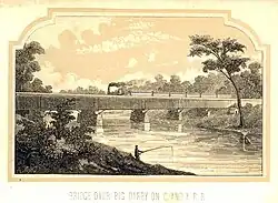 On December 14, 1841, the first train ran from Cincinnati to Milford, a distance of 20 miles (32 km) along the Little Miami River,[1] and preparations had been made to lay rails north along the river to Fosters. Additional track was opened to Loveland the next year.