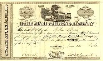 The Little Miami was incorporated on March 11, 1836. Its first president, who served without pay, was Jeremiah Morrow, governor of Ohio. It was the second railroad incorporated in the state of Ohio. The first meeting to sell stock was held at Linton's Hotel, Waynesville, May 13, 1836; the second on June 2, 1836 in Xenia. The railroad was originally intended to run from Cincinnati to Springfield, where it was expected to meet the Mad River and Lake Erie Railroad, which was building south to Springfield from Sandusky on Lake Erie.