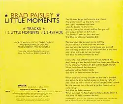 "Little Moments" is a song co-written and recorded by American country music singer Brad Paisley. It was released in September 2003 as the second single from Paisley's album Mud on the Tires. Paisley wrote this song with Chris DuBois.