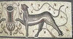 The triconch building is very unusual and similar buildings only exist in North Africa and only much later in the sixth-century Byzantine world. This mosaic is usually interpreted in very complicated pagan religious terms involving not only Orpheus, but Bacchus and Apollo, the hall being seen as a cult centre for these two gods. Other buildings may have been converted to accommodate visiting pilgrims.