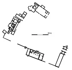 Many of the buildings were demolished or fell into decay around 400, shortly after the Theodosian legislation against paganism and before the Roman withdrawal from Britain. Two sub-Roman timber structures have been identified on the site.