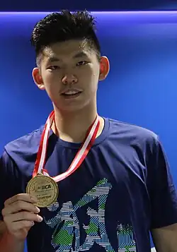 Liu Yuchen (Chinese: 刘雨辰; pinyin: Liú Yǔchén, born 25 July 1995) is a Chinese badminton player.[1] He was the men's doubles World Champion in 2018,[2] two-time Asian Champion in 2017 and 2018,[3][4] and also a silver medalist at the 2020 Summer Olympics partnered with Li Junhui.[5] Liu was part of the national team that won the 2018 Asian Games, 2018 Thomas Cup, and 2019 Sudirman Cup.[6][7][8] Together with Li, he achieved the men's doubles world number 1 on 6 April 2017, and occupied the top ranking for ten weeks.[note 1]