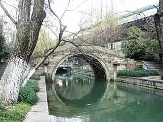 The Liubu Bridge (simplified Chinese: 六部桥; traditional Chinese: 六部橋; pinyin: Liùbù Qiáo) is a historic stone arch bridge over the Zhong River in Ziyang Subdistrict, Shangcheng District of Hangzhou, Zhejiang, China. The bridge is 15 metres (49 ft) long and 5 metres (16 ft) wide.