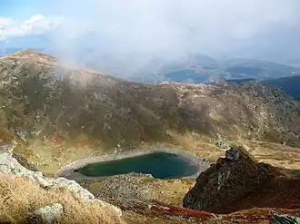 Livadh Lake (Albanian: Liqeni i Livadhit or Shterbaqko; Serbian: Штрбачко језеро, Štrbačko jezero or Ливадичко језеро, Livadičko jezero, Macedonian: Ливадичко езеро) is a mountain lake in the Shar Mountains in Kosovo. It lies at an elevation of 2,173 m (7,129 ft) above sea level and has a maximum length of 228 m (748 ft) and a maximum width of 120 m (394 ft).