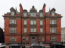 The facility was founded as the Liverpool Hahnemann Hospital and Dispensaries in 1887.[1] The hospital building at 42-56 Hope Street, designed by F & G Holme, is an example of the Queen Anne revival style. It is now a Grade II listed building.[2][3] It was the first hospital in the United Kingdom to contain early hydraulic lifts and an innovative heating and ventilation system.[4] It joined the National Health Service in 1948. Renamed as the Hahnemann Hospital in 1969,[1] it was eventually closed in 1976.[1] It later became part of Liverpool John Moores University.[5]