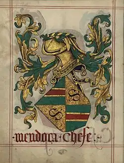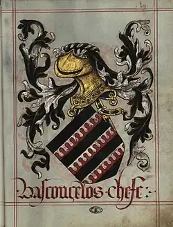 - ^ Dutch surname; vant = van't. Identical name to the arms in the lower-left corner of folio 123v - where the Cross of Christ also appears. There was also a namesake in the Livro dos Reis de Armas, which disappeared in the 1755 earthquake, according to the Tesouro da Nobreza de Portugal.