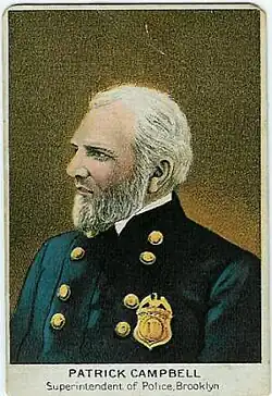 - ^ "CAMPBELL SAYS GOODBYE; Leave-taking of the ex-Superintendent of the Brooklyn Police. COMPLIMENTS FROM MR. WELLES The Commissioner Was Surprised at Receiving the Resignation -- An Incident Showing Campbell's Activity". The New York Times. 5 March 1895. Retrieved 2009-05-09.