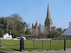 Llandaff Cathedral (Welsh: Eglwys Gadeiriol Llandaf) is a Church in Wales cathedral and parish church in Llandaff, Cardiff, Wales. It is the seat of the Bishop of Llandaff, head of the Church in Wales Diocese of Llandaff. It is dedicated to Saint Peter and Saint Paul, and three Welsh saints: Dubricius (Welsh: Dyfrig), Teilo and Oudoceus (Welsh: Euddogwy). It is one of two cathedrals in Cardiff, the other being the Roman Catholic Cardiff Metropolitan Cathedral in the city centre.