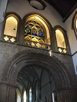 2. ^ When Urban became bishop, he found the present cathedral in a half ruined state. He also felt that the size of the existing cathedral was not large enough to house the remains of Saint Dubricius.[11] Urban described a structure which was about the size of a chapel, with the total length of the building being about 40 feet. He appealed to the Holy See for funds to construct a new cathedral in 1119.[10]