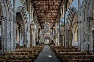 3. ^ A description of the church built by Urban is recorded in the Archaeologica Cambrensis. It was a small church consisting of a nave and chancel with possibly one polygonal tower. The nave of Urban's church eventually became the presbytery and his chancel the Lady Chapel.[14]