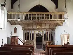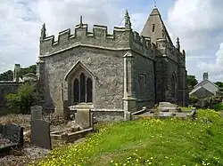 Saint Eilian's Church is Grade I listed.[9] A Celtic clas church, it has a 12th-century tower, 14th-century chapel and a nave and chancel dating from the 15th century. In the chancel is a 15th-century rood screen, and there are traces of post-medieval wall paintings. A painting of a skeleton bears the inscription "Colyn angau yw pechod" (English: The sting of death is sin).[10] The Church is named after Saint Eilian (Eilianus). Eilian of Rome also known as Eilian of Anglesey was a 6th-century saint[11] who came from Rome to Britain where he lived as a hermit in the area north of Anglesey. His feast day is 13 January. The churchyard contains the war grave of a Royal Navy sailor of World War I.[12]