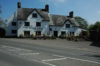 The White Hart inn, a grade II* listed building,[11] was first built in the early 16th century and became the property of Henry VIII as part of Jane Seymour's wedding dowry.[12] A century later Oliver Cromwell is reputed to have used it as his headquarters in Monmouthshire during the English Civil War.[12] The Catholic martyr David Lewis preached in the inn when the church was closed to him; he was executed in Usk in 1679.