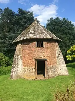 Other buildings in the courtyard complex and gardens with their own Grade II listings include the barn attached to the stables,[21] the cider house,[22] the coach house,[23] the garden walls, terraces and gate piers[24] and the walled garden.[25]