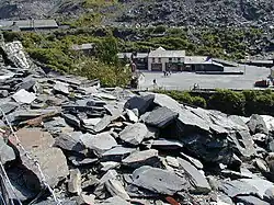 Llechwedd quarry (Welsh pronunciation: [ɬɛχˈwɛð]) is a major slate quarry in the town of Blaenau Ffestiniog, north Wales. At its peak in 1884 it produced 23,788 tons of finished slate per year and had 513 employees. It continues to produce slate on a limited scale and is the location of the Llechwedd Slate Caverns tourist attraction.
