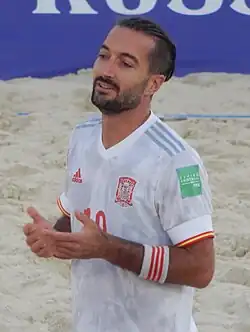 As well as continuing to represent Spain, in order to make a full living from the sport, he has also played for numerous club sides in leagues around the world as a sought after player.[6] Major clubs include Barcelona (Spain), Kristall (Russia), Lokomotiv Moscow (Russia), Flamengo (Brazil), KP Łódź (Poland), Falfala Kfar Qassem (Israel), Tokyo Verdy (Japan), Catania (Italy) and Artur Music (Ukraine).[14] He tasted international success in the 2015 Mundialito de Clubes, 2015 Euro Winners Cup, 2017 Mundialito de Clubes and 2019 World Winners Cup with each of the first four clubs respectively.